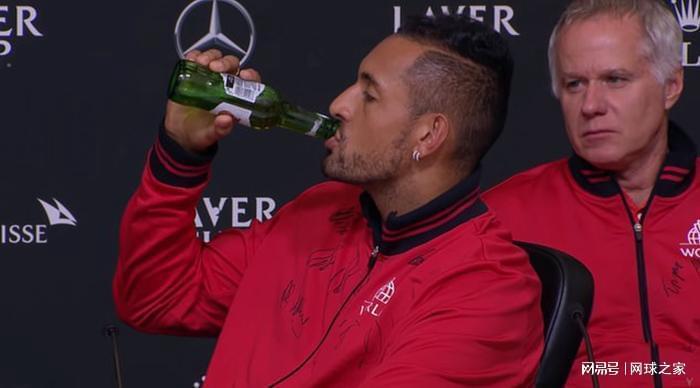 2019年,在拉沃尔杯输给瑞士天王费德勒后,澳洲坏小子为了释放输后的糟糕心情,直接在发布会上当着全球媒体记者的面,旁若无人地豪饮啤酒。此举让外界很多人对他猛批之际,也坐实了他的“网坛坏小子”之名。