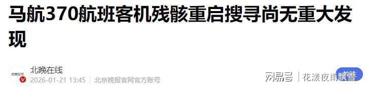 如果后续进展顺利的话,马航MH370会在2026年的1月到4月期间重新展开全面地搜寻。